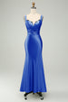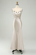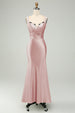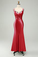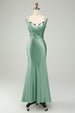 Grünes Satin Meerjungfrau Langes Brautjungfernkleid mit Wimpernspitze