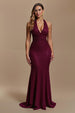 Halfter Burgunderrotes Meerjungfrau Pailletten Langes Urlaubskleid