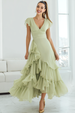 Hellgrünes Langes A-Linie Brautjungfernkleid aus Chiffon mit V-Ausschnitt und Ärmeln