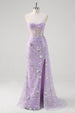 Helllila Meerjungfrau trägerloses Korsett Pailletten Ballkleid mit Schlitz