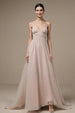 Hellrosa A-Linie Spaghettiträger Langes Abendkleid