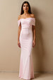 Hellrosa Meerjungfrauen Schulterfreies Abendkleid aus Chiffon