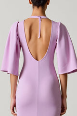 Hellviolettes Etui Hochzeitsgastkleid mit Rüschenärmeln und Schlitz