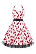 Hepburn Stil Neckholder Tüll Schwarz Bedrucktes Rockabilly Kleid