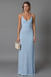 Himmelblaues Etui Chiffon Spaghettiträger Langes Abendkleid