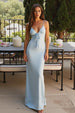 Himmelblaues Langes Abendkleid mit Spaghettiträgern aus Satin