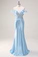 Himmelblaues Meerjungfrauen Schulterfreies Abendkleid mit Blumenmuster und 3D-Blumen