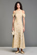 Jacquard Gelbes Schulterfreies A-Linie Kleid für Hochzeitsgäste