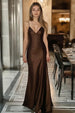 Kaffee Satin Spaghettiträger Meerjungfrau Ballkleid