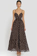 Kaffee Spaghetti-Träger A Linie Weißes Polka Dots Kleid