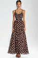 Kaffee Spaghettiträger Langes A-Linie Kleid mit weißen Polka Dots