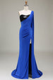 Königsblaues plissiertes Ballkleid aus Satin und Pailletten mit Schlitz