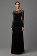 Schwarzes Langes Ballkleid aus Samt mit U-Boot-Ausschnitt und Spitze