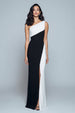 Langes Schwarz-weißes Ballkleid mit einer Schulter