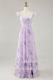 Lavendelblüten A-Linie Bedrucktes Gerüschtes Brautjungfernkleid mit Schlitz