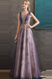 Lila A-Linie Rundhalsausschnitt Tüll Langes Ballkleid