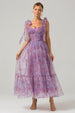Lila A-Linie Plissee Kleid mit Druckmuster in Teelänge