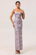 Lila Blumenetui Bedrucktes Spaghettiträger Langes Brautjungfernkleid