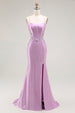 Lila Meerjungfrau Spaghettiträger Korsett Langes Ballkleid mit Schlitz