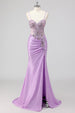 Lila Meerjungfrau Spaghettiträger Korsett Pailletten Langes Ballkleid