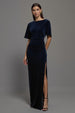 Marineblaues Etui Samt Bateau Ausschnitt Langes Ballkleid mit Schlitz