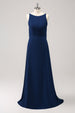 Marineblaues langes A-Linie Brautjungfernkleid mit Wasserfall