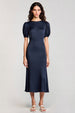 Marineblaues Langes Ballkleid aus Satin mit U-Boot-Ausschnitt und U-Boot