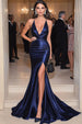 Dieses marineblaue Meerjungfrauen-Galakleid mit V-Ausschnitt, Rüschen und Schlitz ist perfekt für Hochzeitsfeiern, Abschlussbälle oder Abendpartys. Es betont Ihre Silhouette und sorgt für einen eleganten, verführerischen Look, der alle Blicke auf sich zieht.