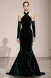 Meerjungfrau Dunkelgrünes Samt Abendkleid aus Neckholder