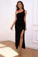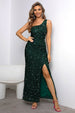 Meerjungfrau Dunkelgrünes Eine Schulter Pailletten Ballkleid mit Schlitz