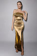 Meerjungfrau Goldenes Einschultriges Gerafftes Langes Ballkleid mit Schlitz