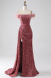 Meerjungfrau schulterfreies Pailletten Ballkleid mit Schlitz