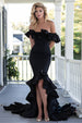 Meerjungfrau Schulterfreies Schwarzes Krawattenkleid mit Rüschen