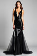 Meerjungfrau Schwarzes Ballkleid mit tiefem V-Ausschnitt und Schlitz