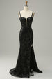 Meerjungfrau Spaghettiträger Königsblau Pailletten Langes Ballkleid mit Schlitz