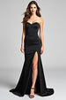 Meerjungfrau Trägerloses Schwarzes Ballkleid mit Schlitz