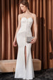 Meerjungfrau Weißes trägerloses langes Ballkleid mit Schlitz