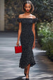 Mermaid Schulterfreies Schwarz-weißes Polka Dot Kleid