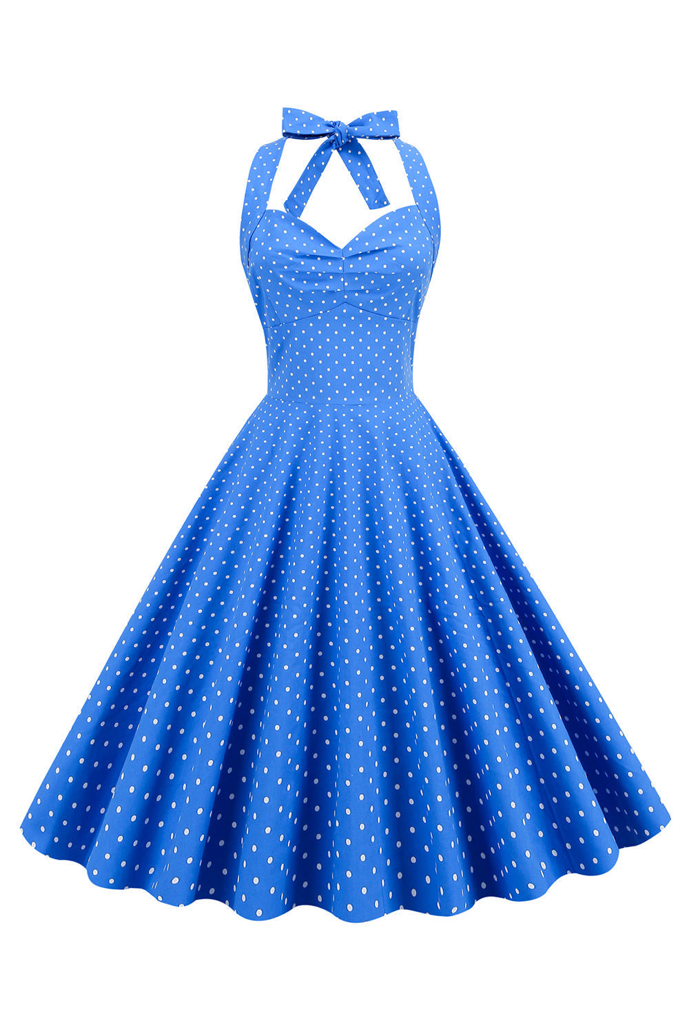 Neckholder Blau Polka Dots Vintage Kleid mit Rückenlehne