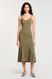 Olive Jersey Spaghettiträger A Linie Hochzeitsgastkleid