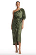 Olive Satin Etui Eine Schulter Midi Partykleid