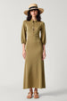 Olivgrünes Hochzeitskleid mit 3/4 Ärmeln mit Satinkragen