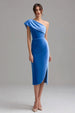 Eine Schulter Blaues Samt Formal Kleid mit Schlitz