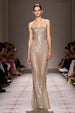 Pailletten Champagner A-Linie Trägerloses Langes Abendkleid