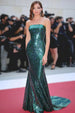 Pailletten Dunkelgrünes Etui Langes Galakleid mit geradem Ausschnitt