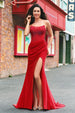 Perlenbesetztes trägerloses Meerjungfrauen korsett Langes Rotes Ballkleid mit Schlitz