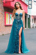Pfau Blau Meerjungfrau Streamer Trägerloses Korsett Langes Ballkleid mit Schlitz