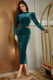 Pfauengrünes Meerjungfrauen Ballkleid mit Rundhalsausschnitt und Schlitz