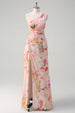 Pfirsich geblümtes einschultriges ärmelloses Ballkleid mit Druck