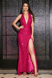 Fuchsia Meerjungfrauen Neckholder Pailletten Ballkleid mit Schlitz